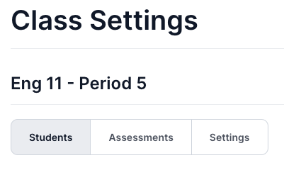 The horizontal menu bar will be found on the top of the page, with three options to choose from: Students, Assessments, and Settings