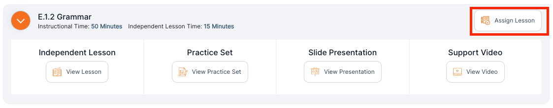 Teachers/Admins can assigned a specific course lesson by clicking the Assign Lesson button located on the top right of each lesson.