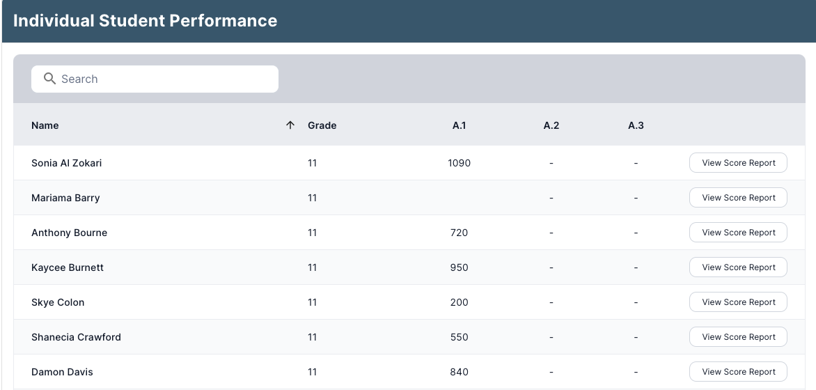 Teachers/Admins can also quickly view any students full results by clicking the View Score Report button.